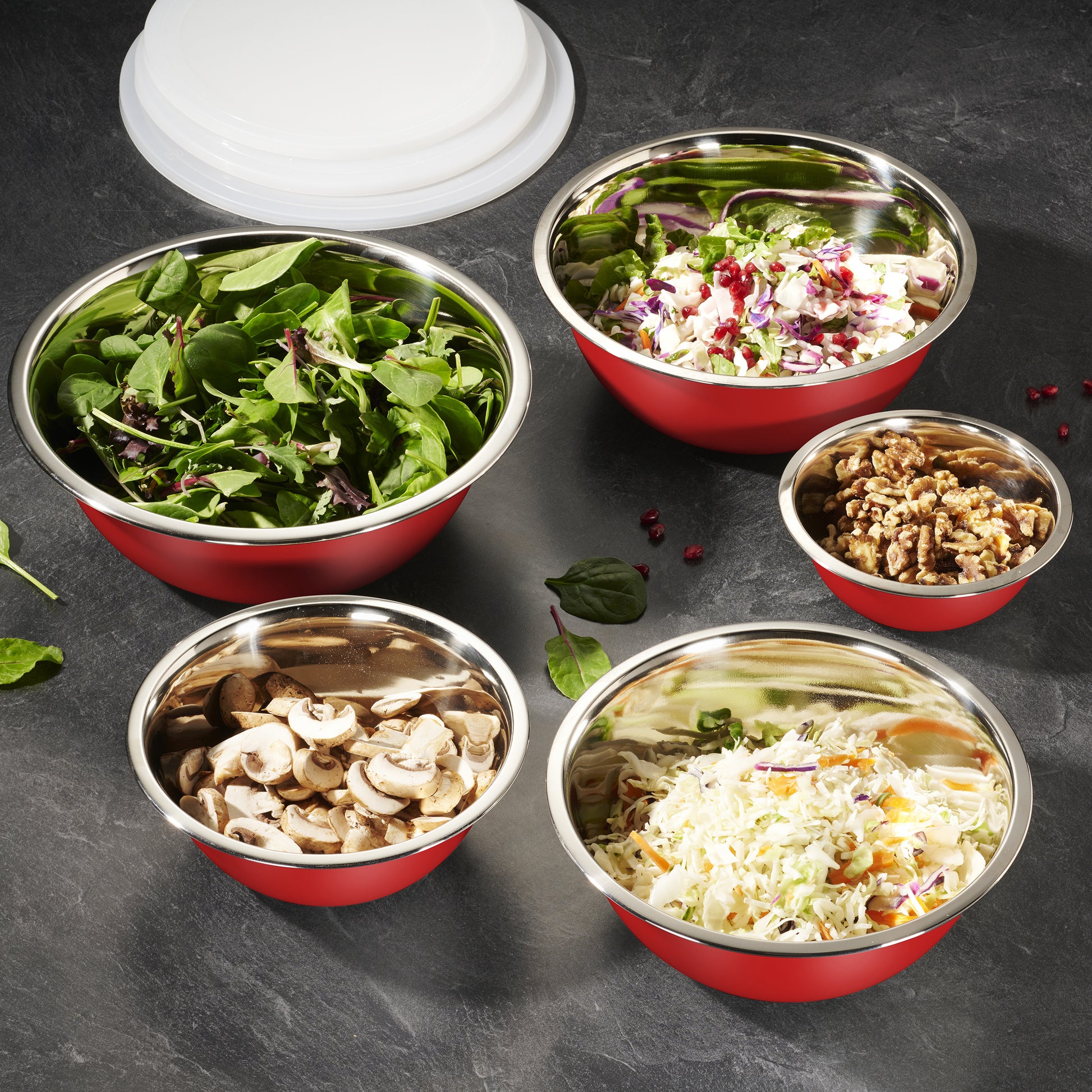 Stainless Steel Mixing Bowls With Lids Set, Red